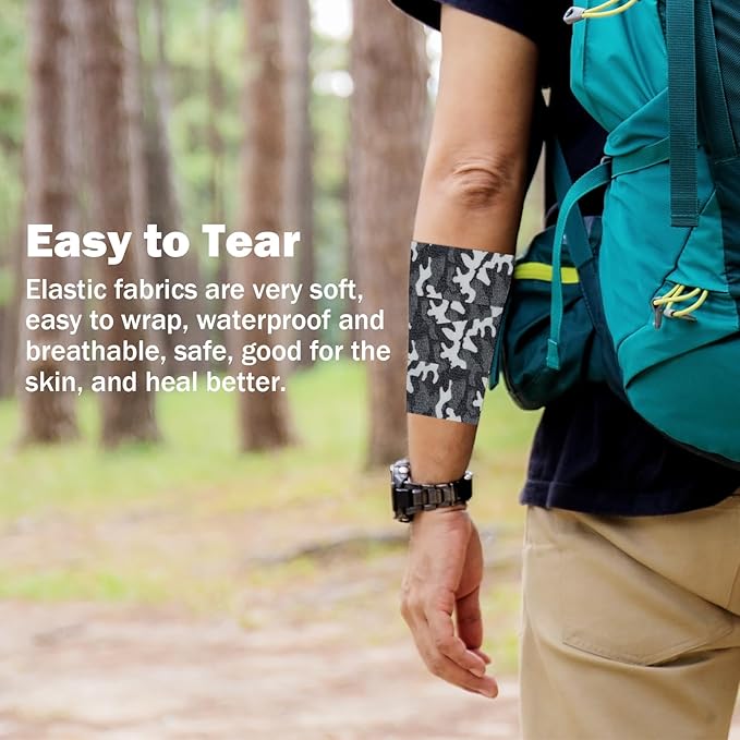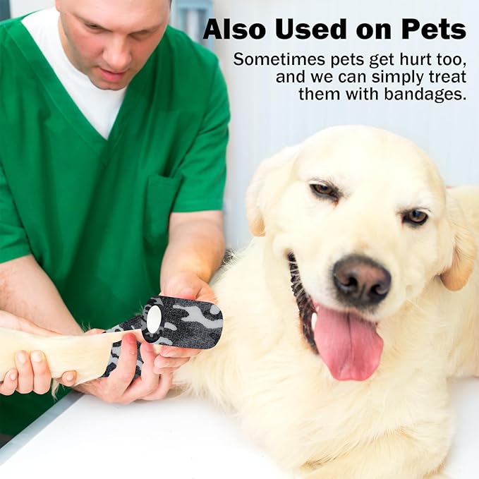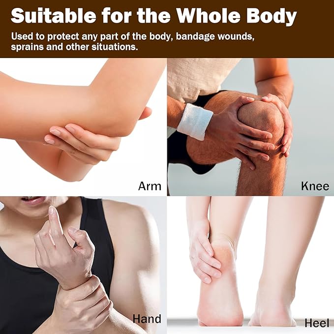 - The bandages are made from high quality porous fabric with bacon strips that are totally safe for your skin as they allow good ventilation. You don't need to worry about they loosen and fall of by sweat or water.They are very light weighted, and safe for your pets as well!(horses, ponies, dogs, cats, etc)