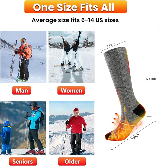 - 【SUITABLE MULTIPLE OCCASIONS】Great for hunting, skiing, fishing, hiking, walking dogs,snowboarding, motorcycle, riding and sporting events.Heated ski socks will be a great choice for cold winter.