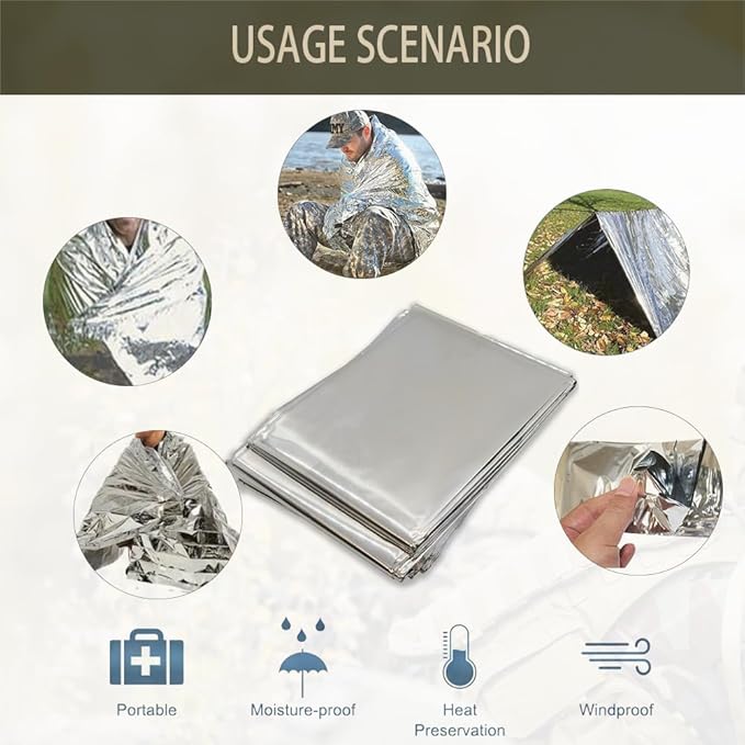 - 【VERSATILE AND LIGHTWEIGHT】: This emergency blanket is incredibly versatile and lightweight, making it easy to carry and store in your backpack or emergency kit. Its compact size allows for convenient transportation, ensuring that you can always have it within reach whenever you need it.