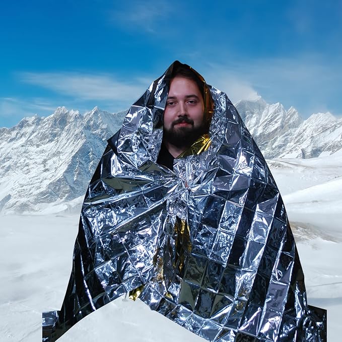 - 【ALUMINIZED TECHNOLOGY】: With its advanced aluminized technology, this emergency blanket provides exceptional heat retention, keeping you warm and protected in any weather. Whether you're hiking, camping, or facing an emergency situation, this blanket is your best defense against the elements.