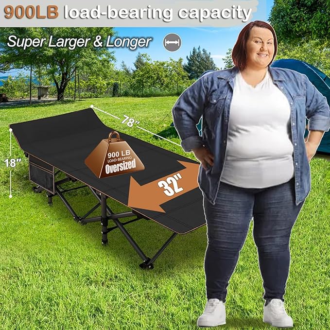 ABORON Oversized Folding Camping Cot for Adults, Double Layer 1200D, 500lb Capacity, Heavy Duty Guest Cot with Mat & Carrying Bag for Indoor & Outdoor Use
