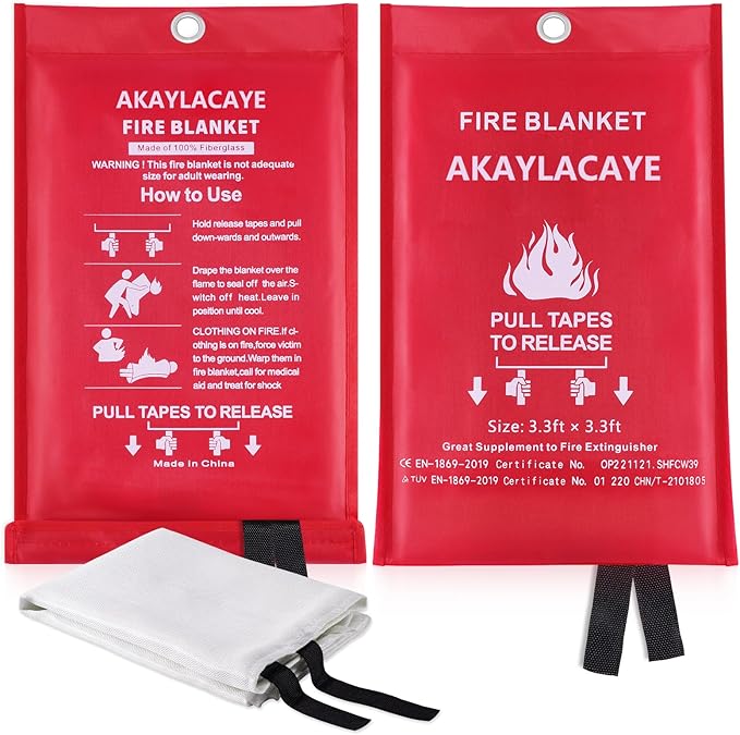 - Highest Rated Fire Blankets : The 3.3ft x 3.3ft large fire blankets are made of the highest quality woven glass fibers. Which can works under 1076°F (580°C), but not melt, nor catch fire. Fire Blanket should be used on all chip or oil & fat fires as it is not ideal to use a regular fire extinguisher due to the potential risk of spraying burning oil & spreading the fire or causing injury.