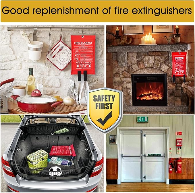 - Guard Your Family Safety: it can extinguish small spot fire quick and easy, bring you a peace mind. Because of its great fire resistance feature, we can wrap it on our bodies to escape from the fire scene. These fire blankets play as heroes in your home
