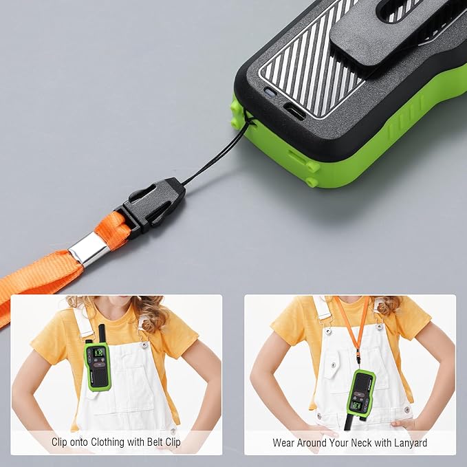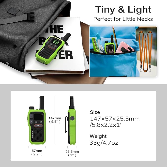 - User-Friendly Design, Perfect to Carry out: It features a clear, backlit LCD screen, an easy-to-use button layout with dual PTT buttons, and a flashlight for low-light conditions. It weighs only 33g (4.7oz) and has a belt clip and lanyard for easy portability. With up to 3 miles long talking range, it is ideal for outdoor activities.