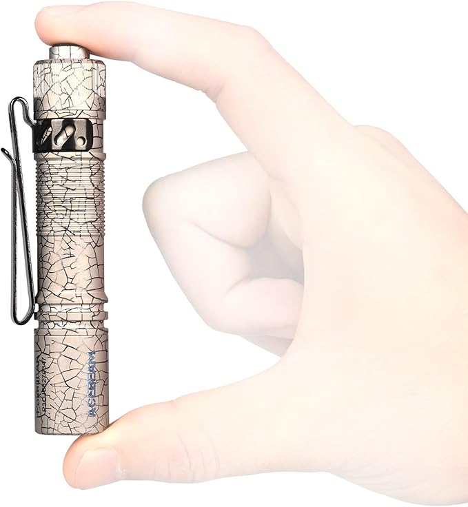 - Sturdy Flashlight: The Pokelit AA Titanium edc flashlight combining a precious metal titanium with a unique design and distinct markings will certainly make your gear stand out. Its IP68 water resistance and 1.5 meters impact resistance make the small flashlight endure rough handling and harsh weather.