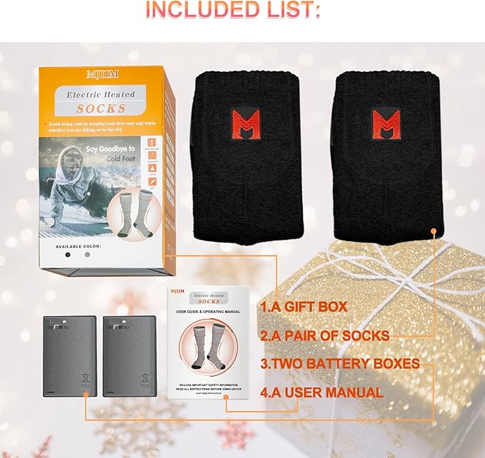 - 【Safe and Long-Lasting Warm Socks】: Heated socks are equipped with 2 battery boxes, powered by 6*AA 1.5V batteries (not included), which providing you with up to 5 hours enduring warmth.