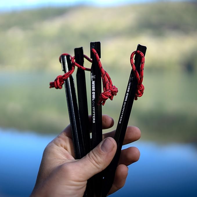 - Included Components : aluminum tent stakes, six 10' guy lines cords, Wise Owl Outfitters Rain Tarp; Rose