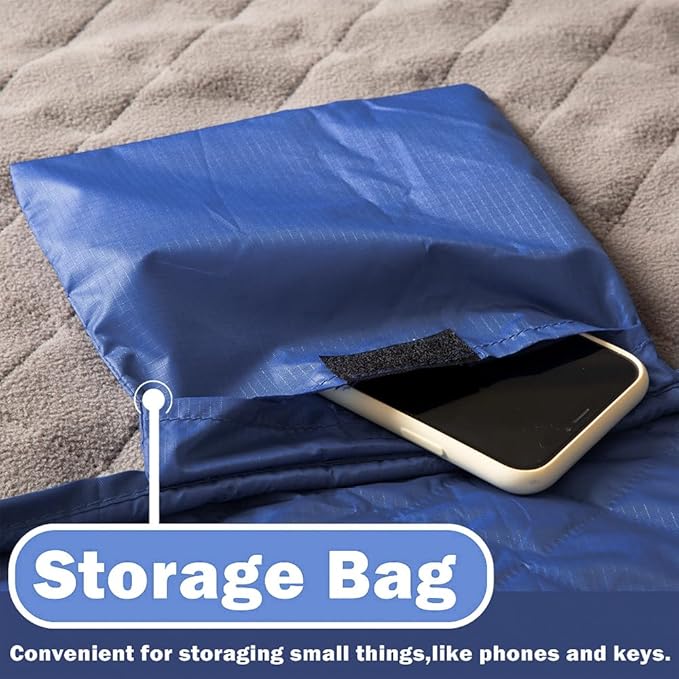 - EASY TO CARRY & EASY STORAGE - We have a waterproof bed blanket storage bag which allows you to fold and store your camping blanket and take it with you in just two minutes. The blanket has a storage pouch for storing small items such as keys and mobile phones that can easily be dropped when camping, and this pouch is located underneath the blanket for aesthetic appeal and security.