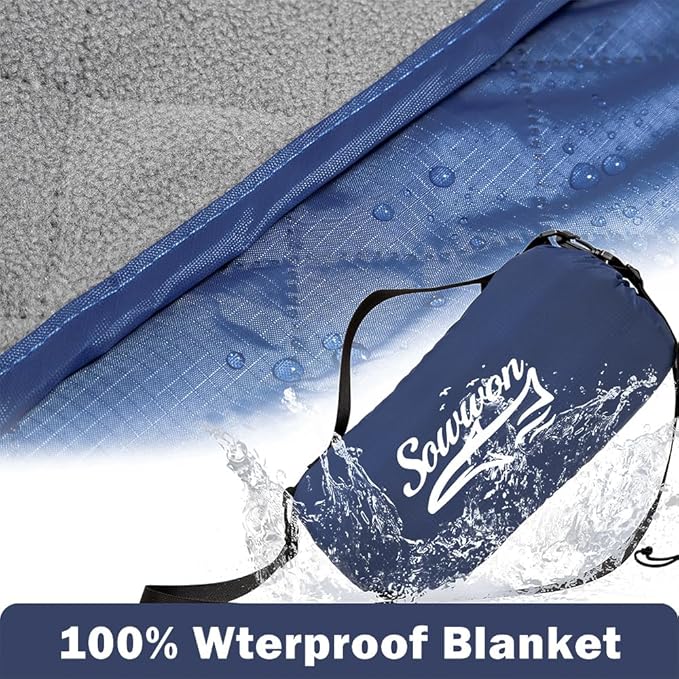 - WATERPROOF BACKING & WINDPROOF - 210T Polyester With Polyurethane Coating, Hot Air Cotton, Polar Fleece 3-in-1 super high quality camping blanket.An ideal stadium blanket to keep you warm and dry, it can also be used as a picnic blanket or beach blanket. Outdoor blanket is perfect for keeping you and your friends family warm.