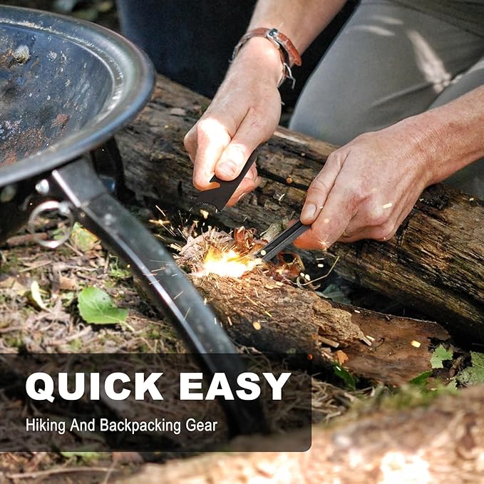- 👍Survival Gears: Sparks shower at 5,500 F (3,000 C) to ignite a fire in any weather (even wet), at any altitude. Perfect emergency fire starter for Camping, Hiking, Hunting, Fishing,Emergency etc.It is a necessary camping essentials and camping gears.