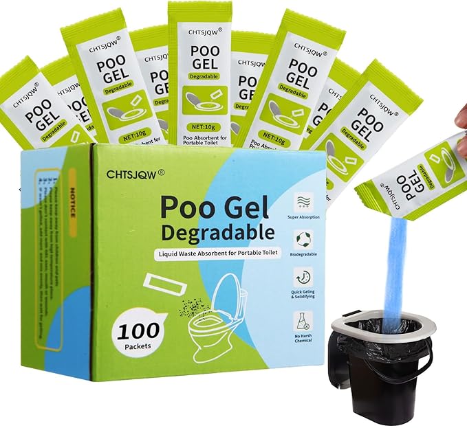 Portable Toilet Absorbent Gel Powder, 100 Pack Poo Gel for Camping Eco Absorbent Gel, Poo Urine Powder for Camping Outdoor Hiking Fast-Acting Gel