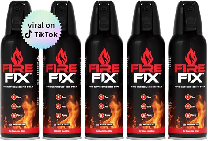 - Efficient and User-Friendly Performance: Combat fires effortlessly with the Fire Fix Fire Spray's intuitive design. Utilizing a revolutionary foam formulation, it rapidly expands to suppress fires, halting their progression effectively. Simply tear off the tab, hold the can at a distance of 3 to 4 feet from the fire, direct the nozzle, and spray to initiate firefighting action.