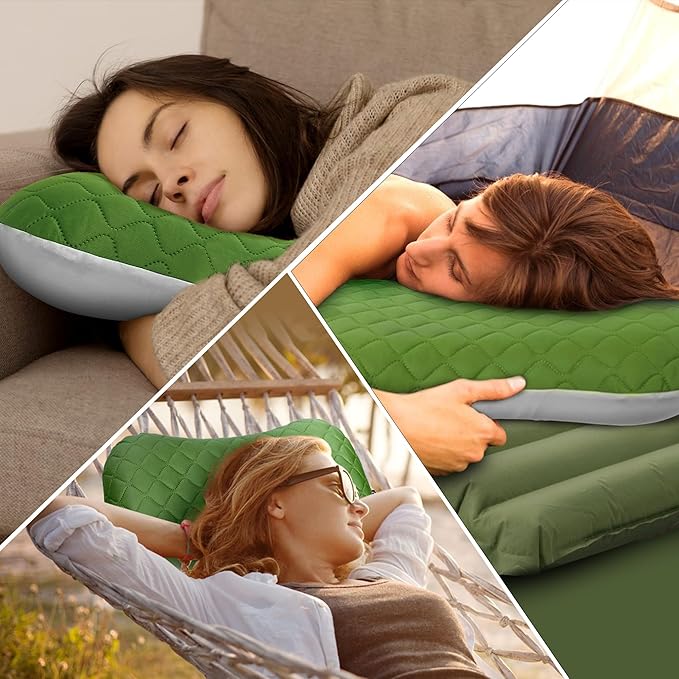 - 【ENHANCED CAMPING COMFORT】Experience a good night's sleep wherever your adventures take you. Our inflatable pillow provides excellent neck and head support, making camping more enjoyable. Camping pillow firmness can be adjusted through the valve to fit your preferences.