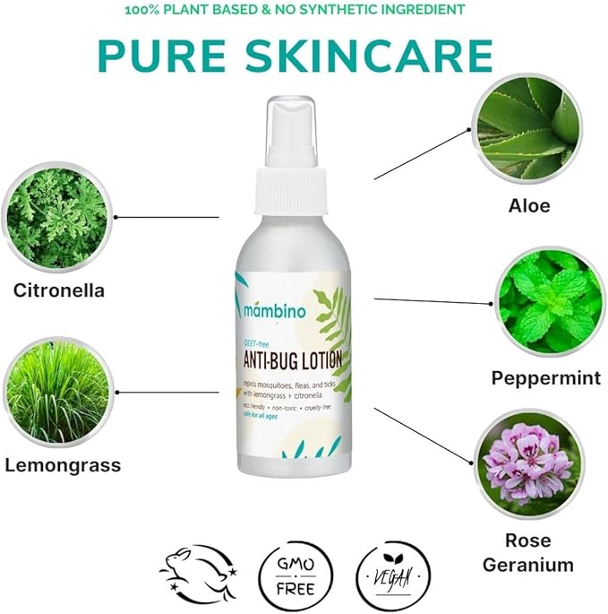 Anti-Bug Spray & Lotion DEET-Free – Organic, All-Natural Bug Spray & Lotion Made with Nourishing Essential Oils – Bug Repellent for Babies, Kids, Adults, Camping, & More by Mambino Organics, 8oz