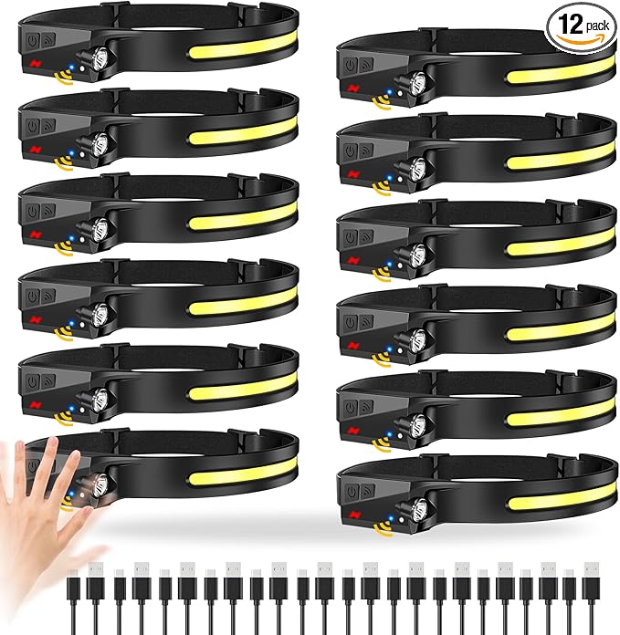 12Pack Headlamp Rechargeable, 1000 Lumen Headlamps for Adults, 230 Angles Wide Beam Headlamp & Spotlight, Motion Sensor, 6 Modes, Lightweight Head Lamps for Camping Running Cycling