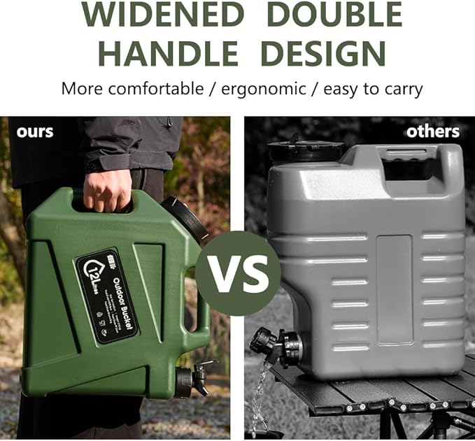 - 【Ergonomic Thickened Dual Handle】A 3.2 gallon water storage container with a faucet weighs only 920g/2 pounds. Paired with an ergonomic dual handle design, the handle angle can be freely selected. This portable water jug can be perfectly placed in the car trunk,suitable for outdoor usage.