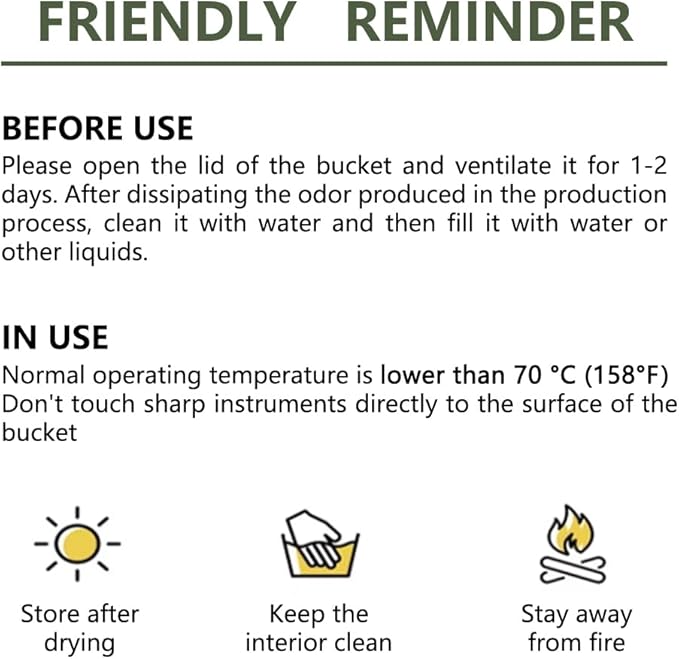 - 【After Sales Service】Regarding our outdoor water bucket, if you have any questions, please feel free to contact us at any time. We will reply within 24 hours and do our best to solve your problems.