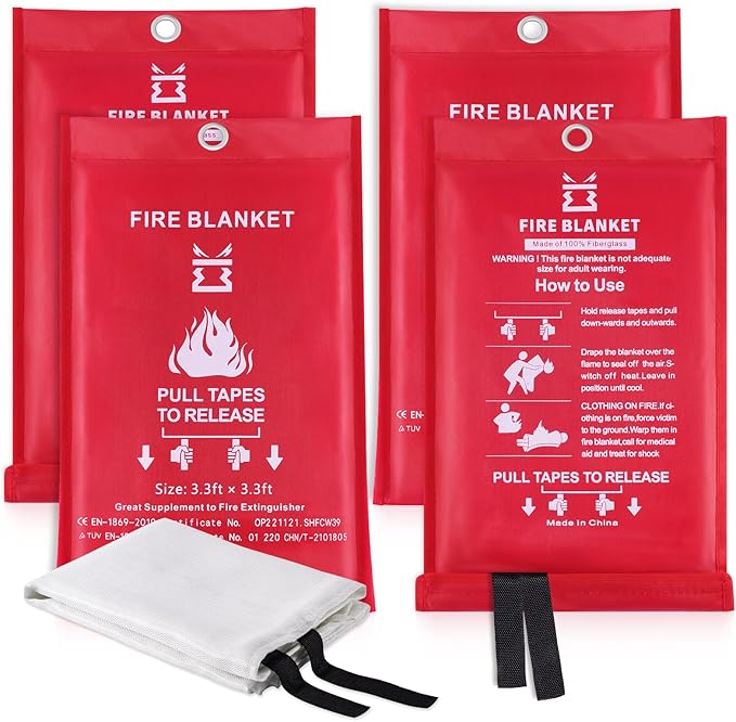 Fire Blankets for Home and Kitchen Emergency Safety – 4 pack 3ft x 3ft Fiberglass Fire Suppression Blanket Suspend Flames Retardant for Cooking Stove Grill Car Garage Office RV Warehouse (4 Pcs)