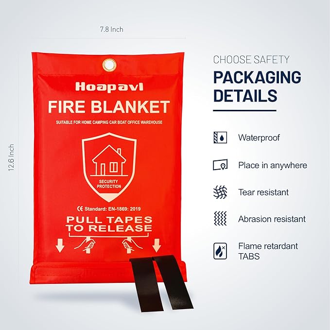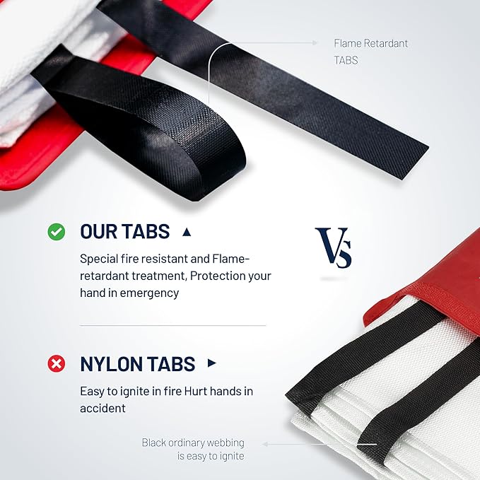 Emergency Fire Blanket, 40” x 40” Fire Blanket for Home and Kitchen, Fiberglass Fire Blankets for Camping Car Boat Office Warehouse Fire Safety, Quickly Suppresses The Spread of Fire