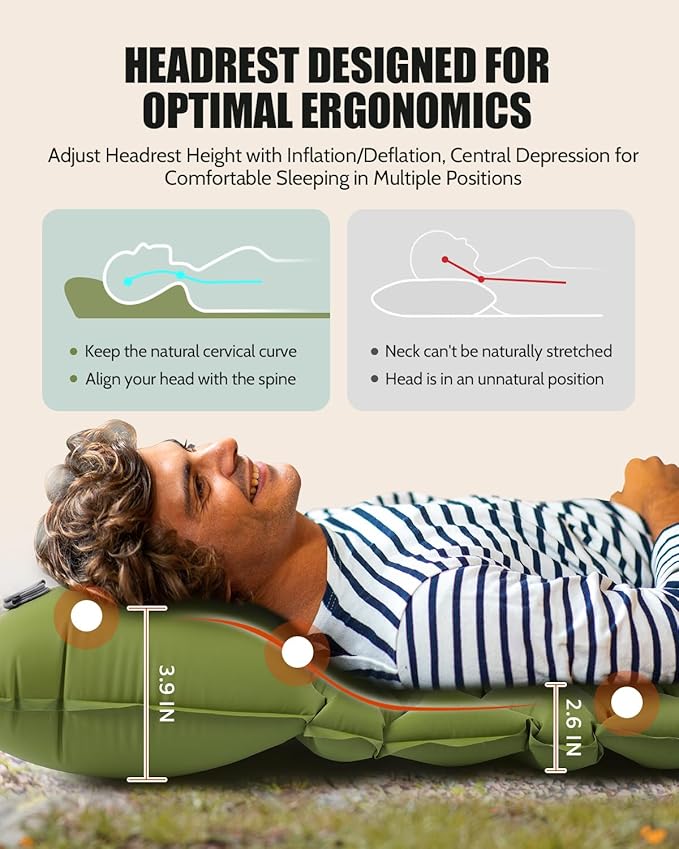 - 【Unique Comfort in Nature】 Immerse yourself in the unparalleled comfort of Kimevan's Inflatable Sleeping Pad. Crafted for a superior sleep experience, its unique pattern increases the contact area by approximately 30%, ensuring a restful night under the stars.