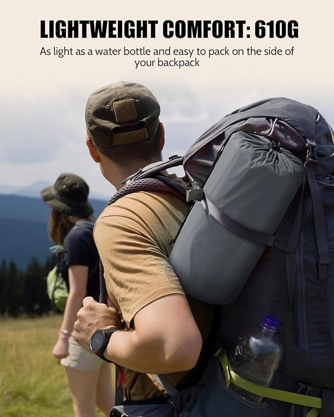 - 【Lightweight and Compact Design】Take your camping experience to new heights with our ultra-portable camping pad. Weighing in at just 610g, it effortlessly packs down to the size of a standard water bottle. Imagine the convenience of slipping this neatly stored pad into your backpack's side pocket, offering you the freedom to explore without the burden of heavy camping gear.