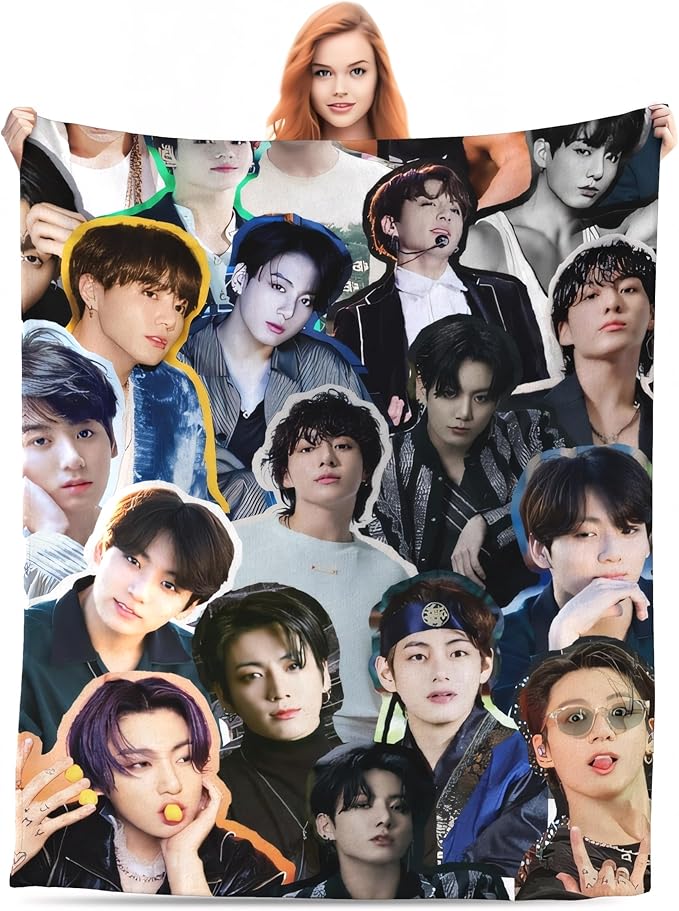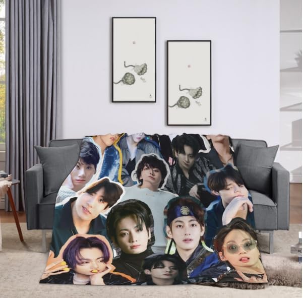 Jungkook Blanket Jeon Jung Kook Soft and Comfortable Warm Fleece Throw Full Picture of Idol Group Blankets 50"X60" Beach Blankets Gift for Dorm Room Decor Sofa Bed Camping Travel