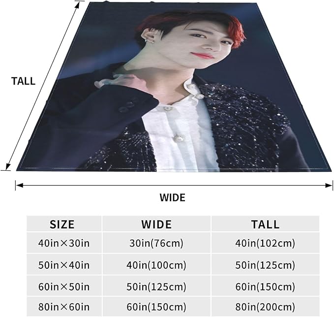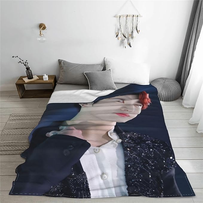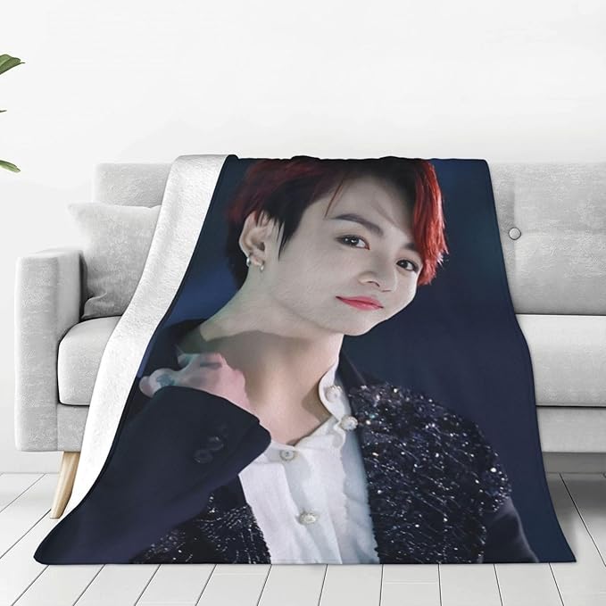 Jung Kook Blanket 60"X80" Soft and Comfortable Warm Fleece Throw Full Picture of Idol Group Blankets Yoga Blankets Beach Blanket Picnic Blankets Gift for Dorm Room Decor Sofa Bed Camping Travel