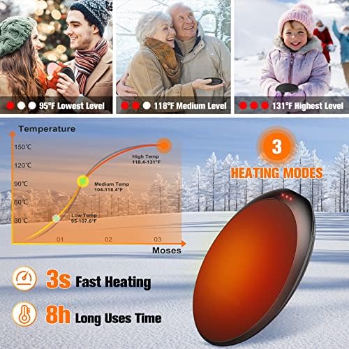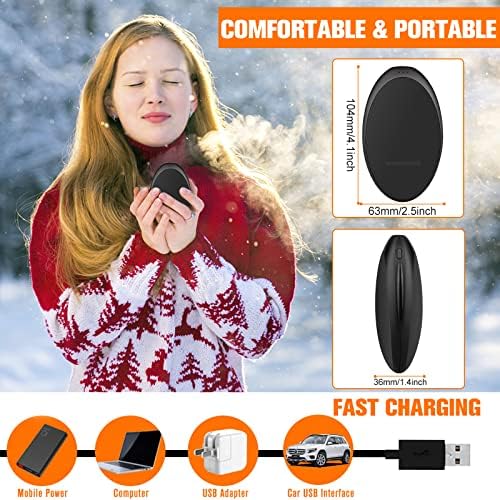 - ♨️【Safety Rechargeable Hand Warmer】Our electric hand warmer has built-in intelligent temperature control chip that releases warmth evenly and at a stable temperature, neither too hot nor too cold, which provides protection against over-voltage, overcharging, overheating, and short circuits, ensuring the safety of you and your device. When this reusable hand warmer is used as a power bank, it can charge your mobile phone 1-2 times. Please do not charge and heat the hand warmer at the same time.