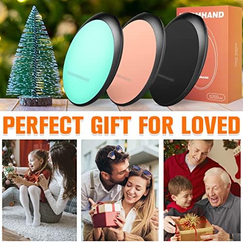 - ♨️【2022 Newest Hand Warmers】Our hand warmers is crafted from aircraft-grade aluminum alloy and ABS material, 5200mAh lithium rechargeable battery,so battery operated hand warmers heats up faster and safer. Lightweight and compact body with anti-skid silicon coating, easy to grasp and carry in your pocket or gloves. If you’re running errands or are commuting to the office and need to turn the heat on and off for multiple short bursts everyday. Definitely an ideal gift for someone with cold hands.