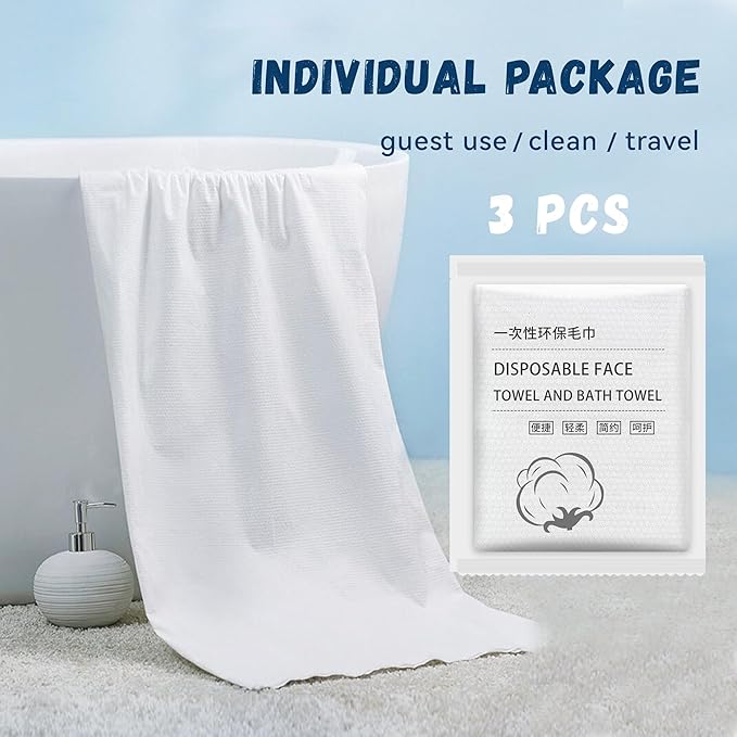 - 🛁 Easy To Use : You can get a large size bath towel just unpack without adding water, 140 x 70 cm, 3 pcs.
