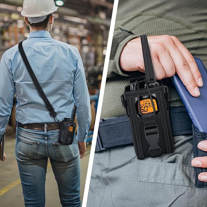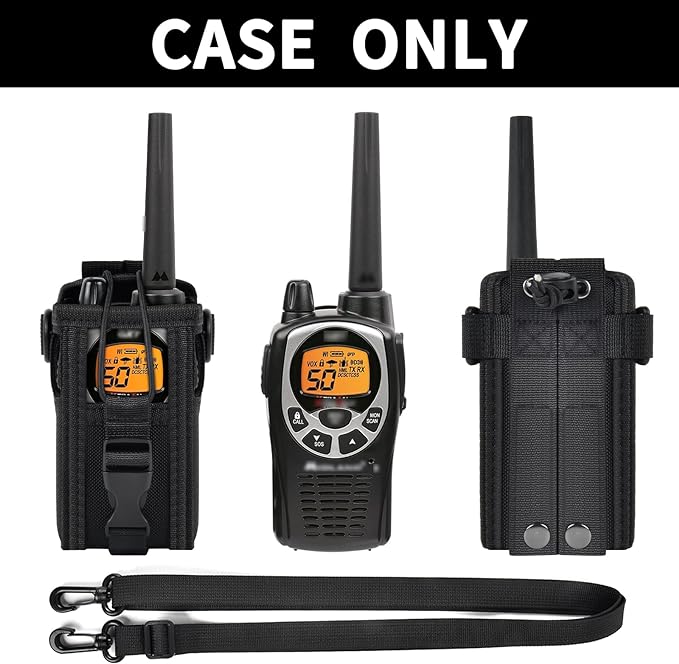 - Portable frs two-way radios case: Waki taki carrying bag comes with an adjustable shoulder strap so you can wear it crossbody, the back of the organizer has straps for gxt1050vp4 walkie-talkie to hang on your waist, and the Velcro and button design keeps it tightly on the belt without moving easily.