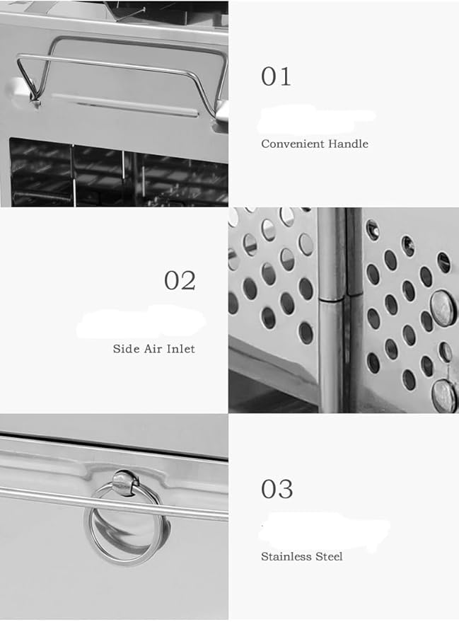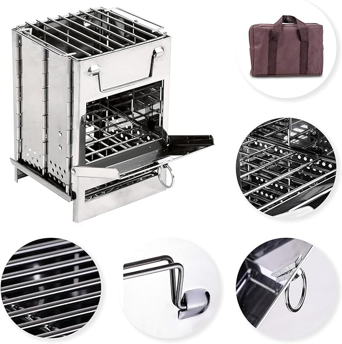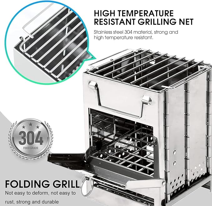 - Contains a rocket stove, a ash pan, a grill, a handbag, no need to disassemble, ready to use. Don't worry about not being able to use it after deformation.