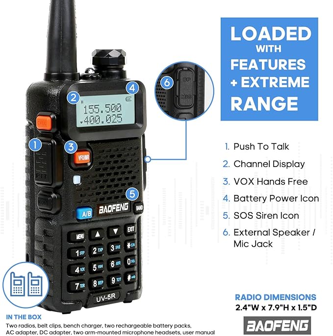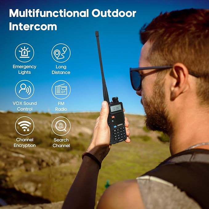 - 【Multi-function radio】128 channels, 50 CTCSS tones, 104 DCS, scan function, busy channel lock-out(BCLO), OFFSET(frequency offset for repeater access), VOX hands-free function, TOT, Squelch Adjustment, LED flashlight and alarm function for emergencies. It has analog and digital intermediate frequencies, option for repeaters achieves long range comminications.