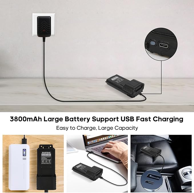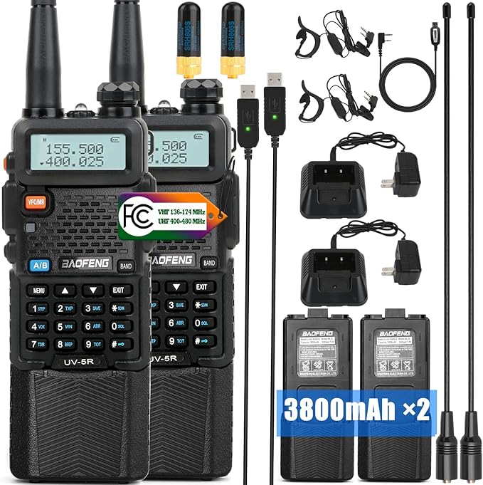 BAOFENG Radio UV-5R 2Pack with 3800mAh Extended Battery and USB Charger Cable, Rechargeable Handheld Ham Radios Long Range (VHF & UHF) with High Gain Antenna and Programming Cable (2Pack)