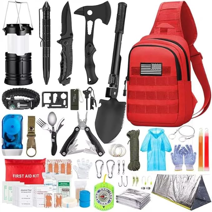 • Included Components : Knife, First Aid Kit, Fishing Tools, Tactical Flashlight, First aid survival kit backpack