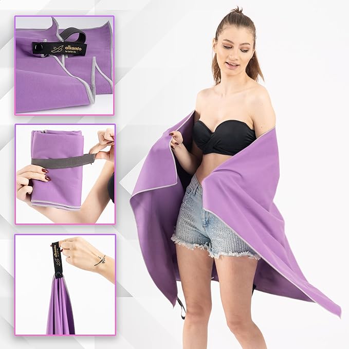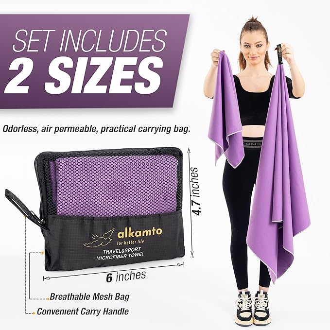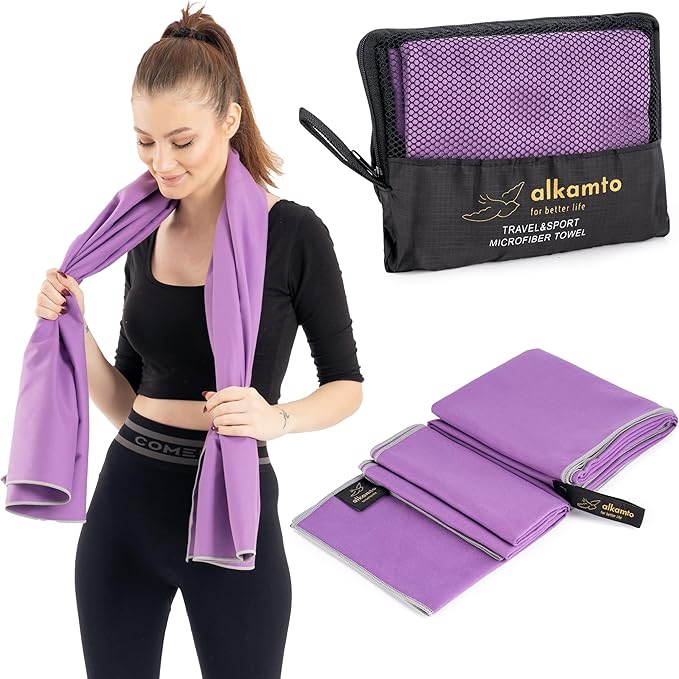 - LIGHTWEIGHT & COMPACT: Alkamto Microfiber towel for travel & sports made to save the space and to be more useful for traveling, professional sports training, and everyday use. Professionals choose it for compact size and small weight. The weight of dry microfiber towel five times less than regular towel.