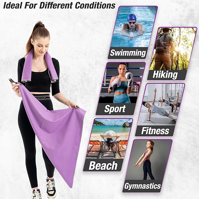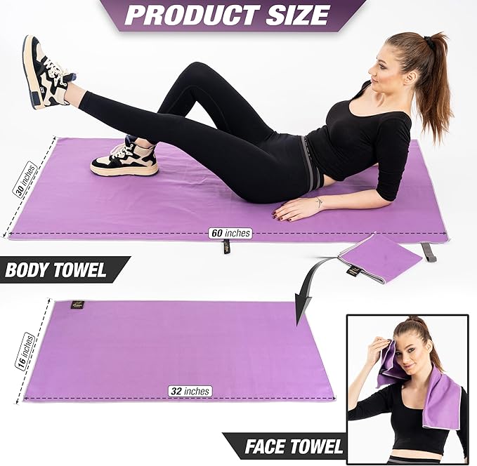- 2 Size in 1 Pack: This set of travel towels has 2 sizes: (60 * 30 inches) is suitable for travel, beach, Yoga, camping and other outdoor activities, (32 * 16 inches) is suitable for fitness, running, head and face