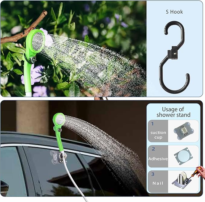 - [PORTABLE OUTDOOR SHOWER SOLUTION] The Portable Camping Shower Set Is Lightweight and Compact, We Provide A Storage Bag For Easy Transport. Easy to Set Up. Suitable For Rv Travel, Family Camping, Personal Adventure, Indoor, Outdoor Bathing, Backpacking, Barbecue, Hiking, Beach, It Can Be Used to Bathe The Baby, Clean The Pets, Water The Plants.