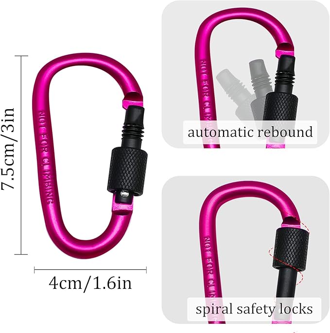 - 【Secure Twist-Lock System】 Engineered with a fail-safe clockwise locking mechanism, these carabiners keep keys, pet leashes, and gear securely attached. Simply press the spring-loaded gate and twist to lock – no accidental openings