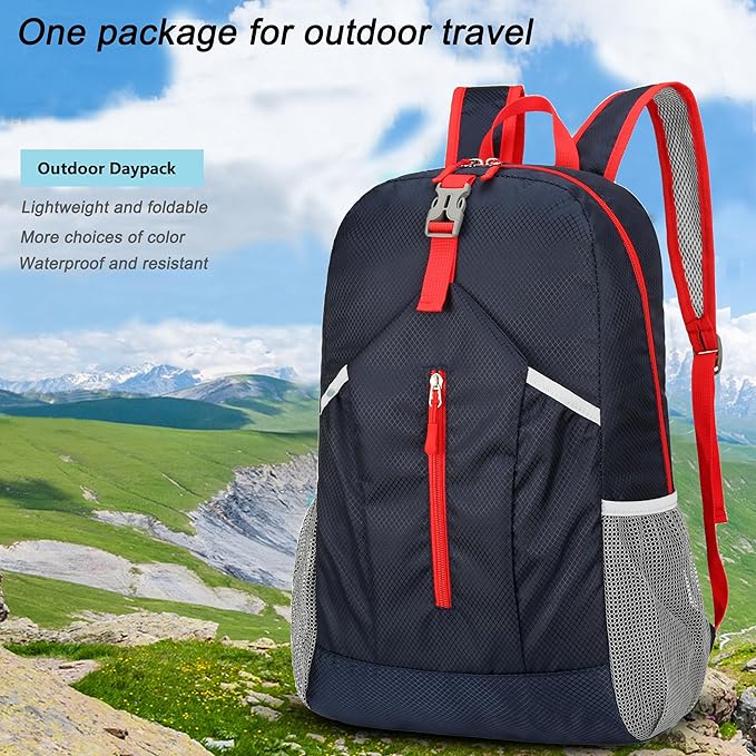 - MULTI-PURPOSE BACKPACK: This foldable backpack is versatile, suitable for various outdoor activities such as travel, camping, hiking, day trips, and even shopping. It offers ample storage space with its main zipper pocket, front zipper pocket, and two mesh side pockets. Ideal for international travel as well.