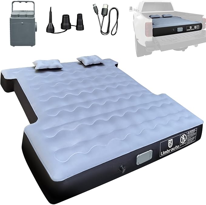 - Heavy Weight Capacity: Built with internal wave beam structures, this air mattress can hold up to 600 lbs (260 kg) without losing shape. It provides a stable and comfortable sleep surface for two people—ideal for truck camping, road trips, or outdoor adventures.