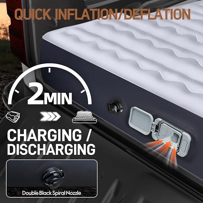 - FULL SIZE Truck Bed Mattress: This air mattress is specifically designed for 5.5'-5.8' FULL SIZE pickup truck beds. It is NOT suitable for midsize truck beds. Please ensure your truck has a 5.5-5.8ft truck bed before making a purchase.