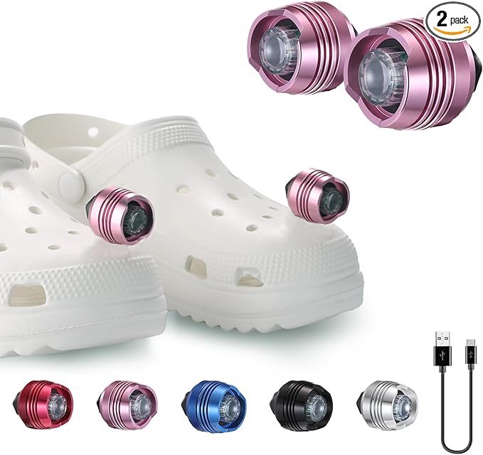 Rechargeable Headlights for Croc 2pcs,Flashlights Attachment for Crocs, LED Shoes Light with 3 Light Modes for Dog Walking, Camping, Running, Suitable for Adults Kids, Pink