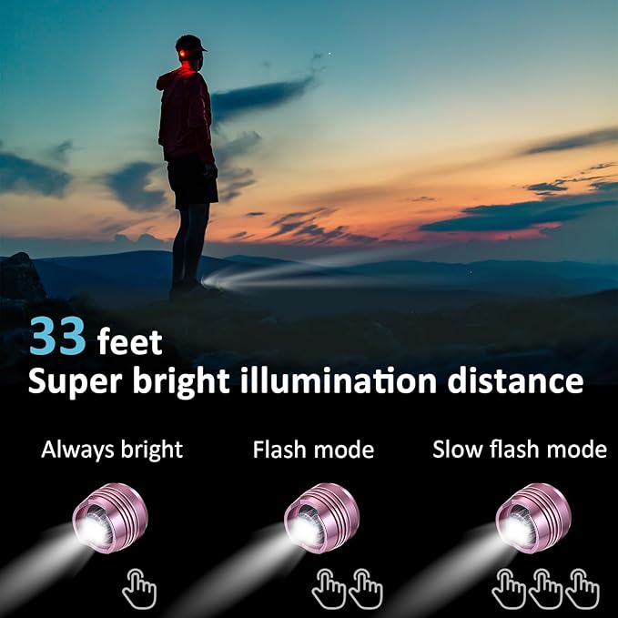 - 【3 luminous modes & Long-Lasting】 Press the cap control button continuously to change 3 different modes, including always bright, flashing or slowly flashing. It can illuminate up to 33 feet away and can last up to 72 hours after a full charge.