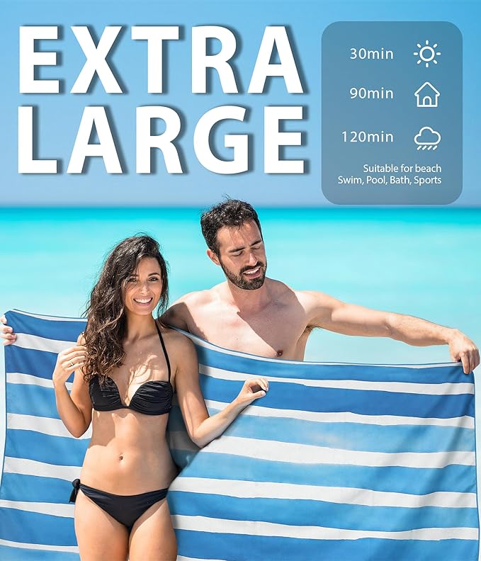 - ☀️[ Microfiber Lightweight ] High quality microfiber that absorbs water much faster than ordinary fabric! Eco-friendly, no faded and no smell. You can easily take it portable to avoid wet and cold on the beach. Perfect size for adults or kids.