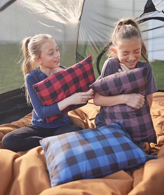 - Features a signature buffalo plaid print that's washable, and packs down tightly