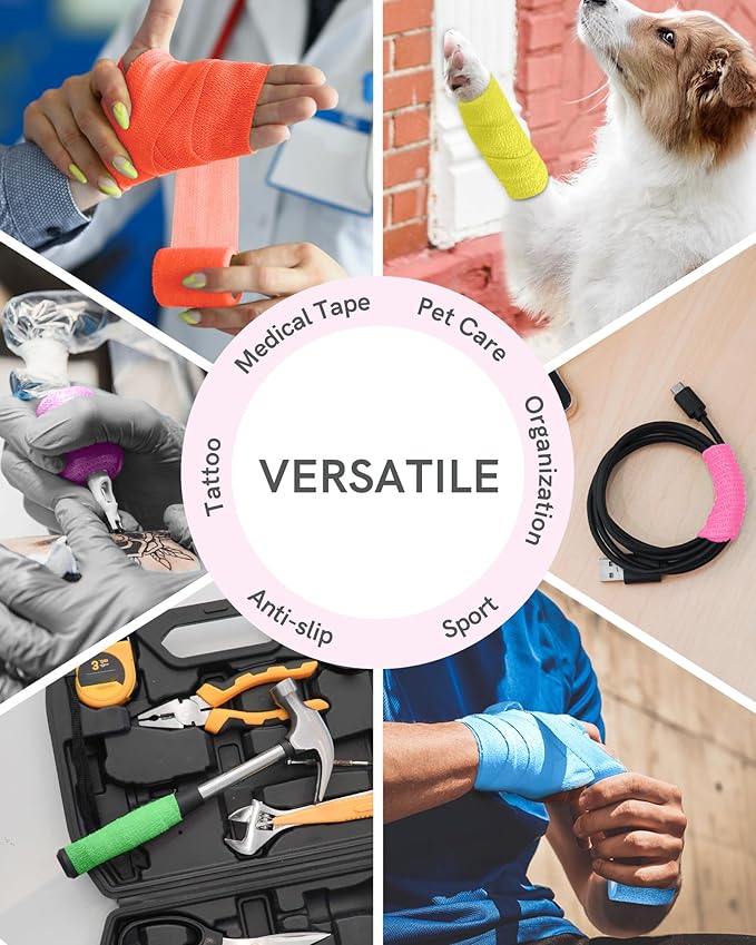 - Fluorescent Colors: Experience the vibrancy of our bandages in Fluorescent Yellow, Purple, Pink, Blue, Green, and Orange. These vivid colors add a lively touch to your medical supplies, making bandage identification quick and easy, perfect for people or pets.