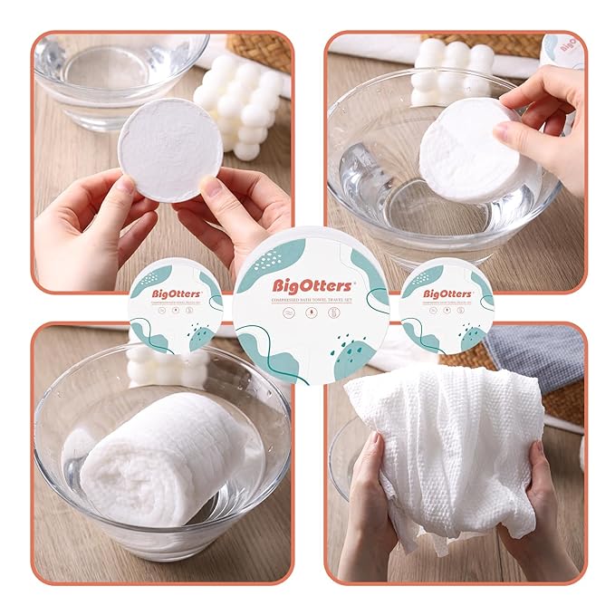 BigOtters Compressed Towel Tablets, Disposable Bath Towel 27.5" x 42" Large Cotton Bath Towels for Hotel Travel Camping Hiking Beach Swimming Vacation