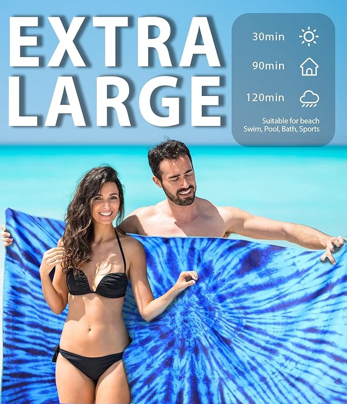 - ☀️[ Microfiber Lightweight ] High quality microfiber that absorbs water much faster than ordinary fabric! Eco-friendly, no faded and no smell. You can easily take it portable to avoid wet and cold on the beach. Multiple size options perfect for all adults and children.