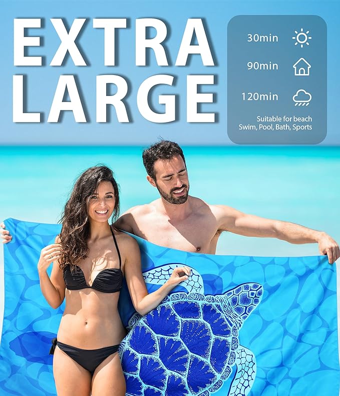 - ☀️[ Microfiber Lightweight ] High quality microfiber that absorbs water much faster than ordinary fabric! Eco-friendly, no faded and no smell. You can easily take it portable to avoid wet and cold on the beach. Multiple size options perfect for all adults and children.
